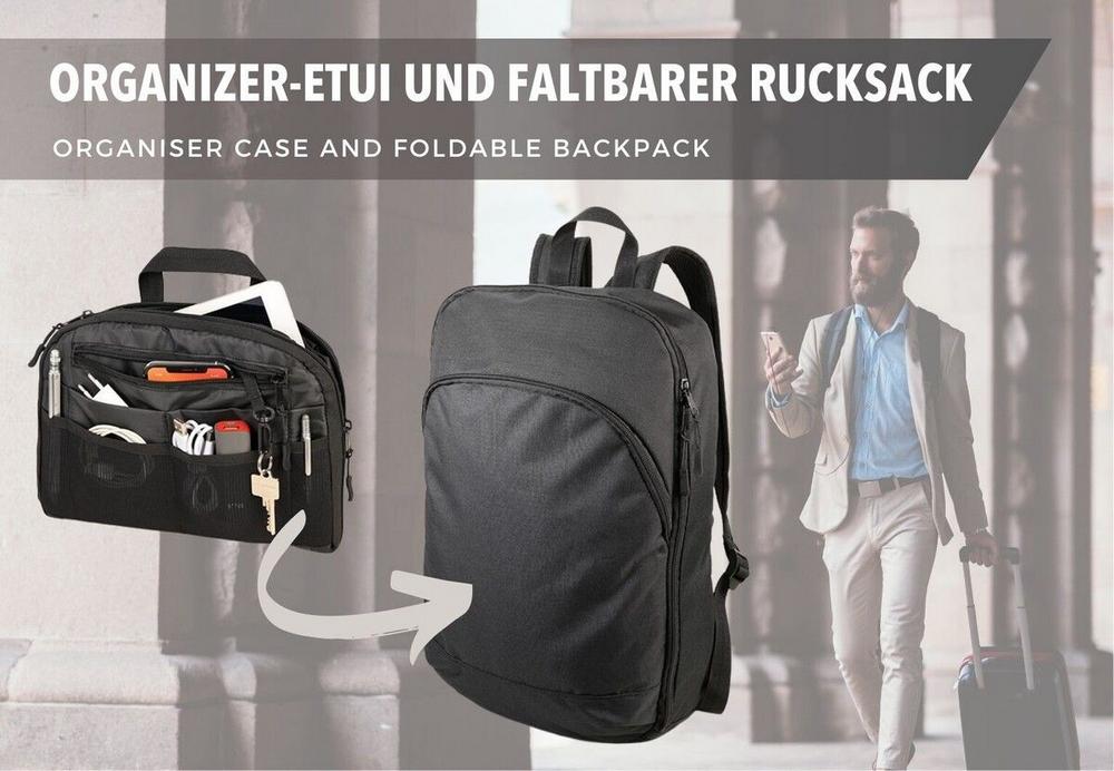 Деловой рюкзак для зарядки электронных устройств, 1 отделение для документов, ноутбука, планшета (до 13 дюймов), 1 отделение на резинке для аксессуаров (повседневная переноска), 1 отделение на спине, складное, мягкие плечевые ремни, эластичная петля для крепление к тележке, встроенный USB-кабель, вход + выход, полиэстер, синий