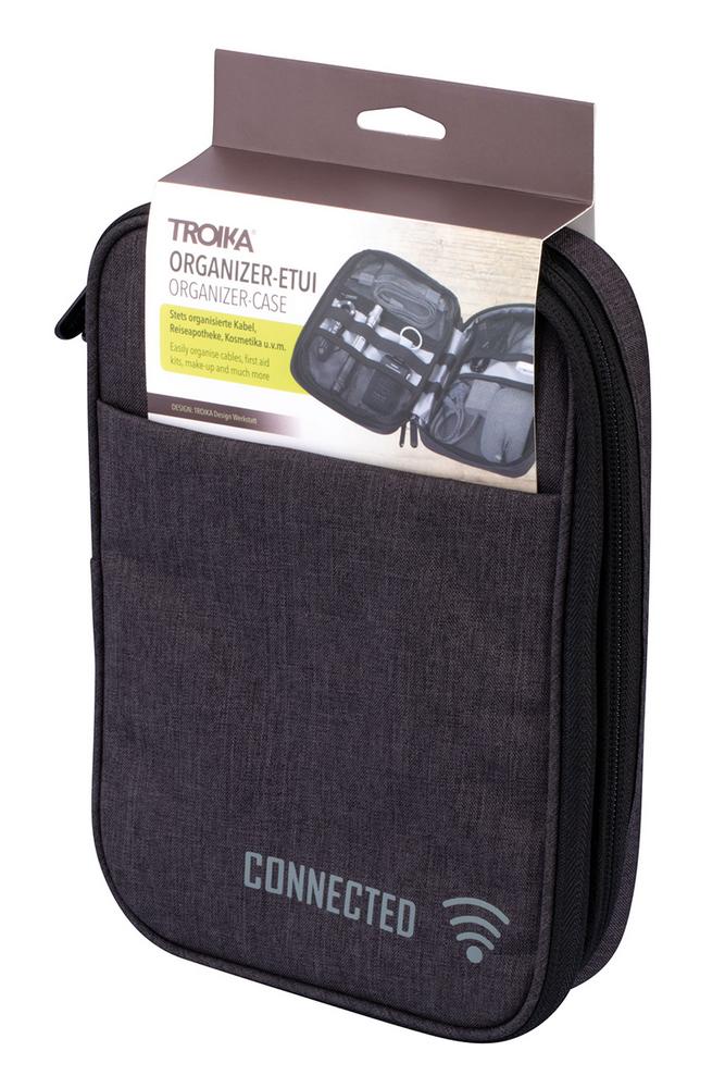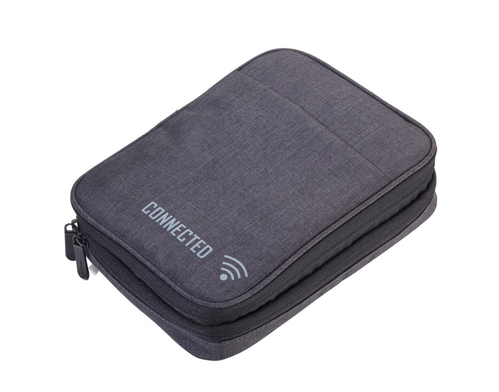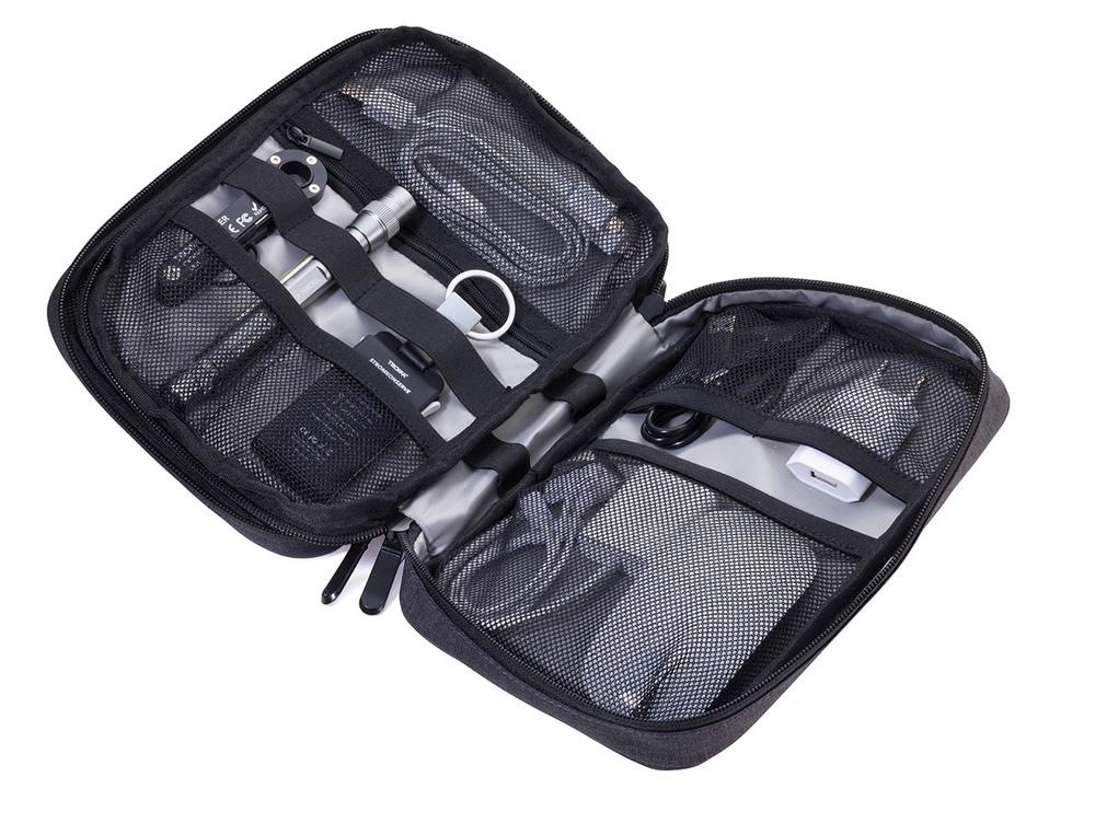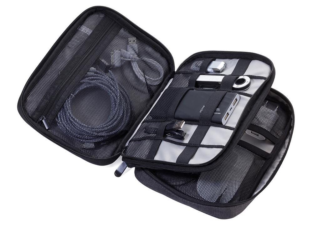 Органайзер для кабелей с 2 отделениями на молнии, 2 внутренних отделения с сетчатыми карманами и эластичными петлями для аксессуаров (Every Day Carry), петля для ручки, 1 внешнее отделение, ремень для крепления к тележке, полиэстер, темно-серый