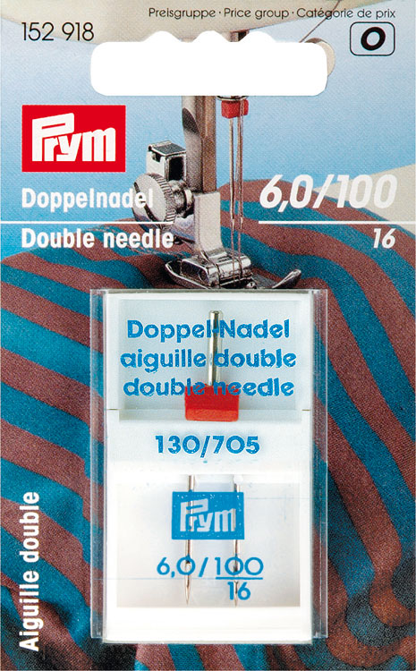 Иглы для швейных машин Twin с плоской колбой для двойных строчек 6 мм №100 для трикотажных полоте 152918 Prym
