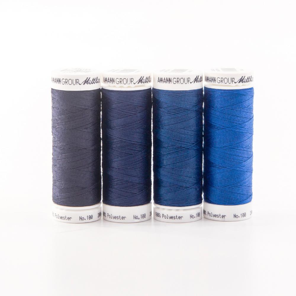 Универсальная швейная нить SERALON комплект из 4 катушек. Устойчивы к разрыву, универсал среди швейных ниток в практическом наборе! Упаковка SE4Navy-Kit включает в себя 4 катушки (цвета 0827, 1465, 0823, 1303).