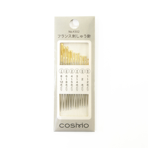 Набор игл COSMO арт. 4302 предназначен для вышивания различными декоративными стежками. Увеличенная длина игл, тонкость и прочность позволяет создавать красивые стежки и долго использовать иглы. Иглы имеют достаточно широкое ушко, что позволяет легко и быстро вдевать нить мулине и приступать к работе. Иглы изготовлены из высококлассной японской стали. Ушко игл особо прочное, имеет ложбинку для нити и золотое нанесение. Кончики у всех игл в наборе острые, заострение плавное. Толщина и длина игл в наборе различная. Предназначены для всех типов ткани, а также разной толщины и сложений нитей. В набор входят 12 игл шести размеров.