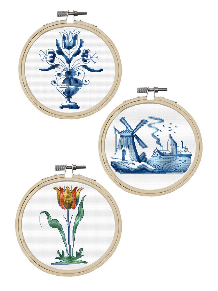 Комплектация: канва лен 32 ct, пяльца (диаметр 15 см) 3 шт, мулине, игла, схема, инструкция