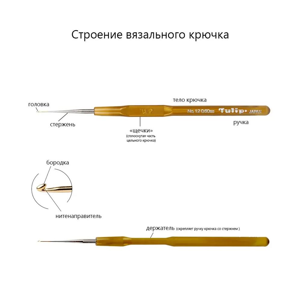Ручка крючка имеет элегантный дизайн и анатомическую форму, которая идеально ложится в ладонь. Специальный выступ под палец обеспечивает комфорт при длительном вязании.