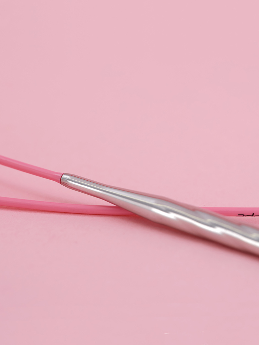 Гибкая розовая леска круговых спиц для вязания не перекручивается и выдерживает даже объемные проекты. А уникальный дизайн без аналогов на рынке подарит вдохновение и радость творчества!
